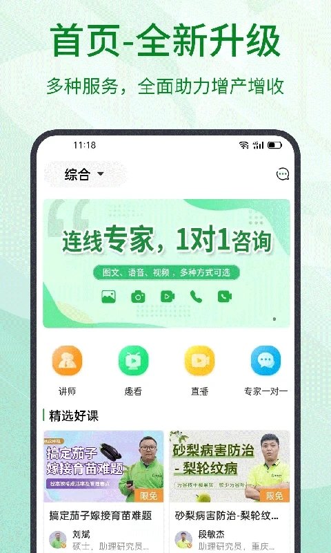 2、观看农技教学,实时连线专家,助力增产增。在线课程,农技知识,随时学习。