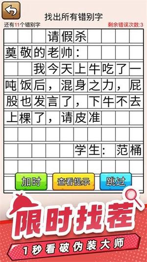 1、设置错别字寻找关卡,考验玩家眼力与语文功底,在看似正常的文本中揪出“隐藏彩蛋”,充满趣味性。