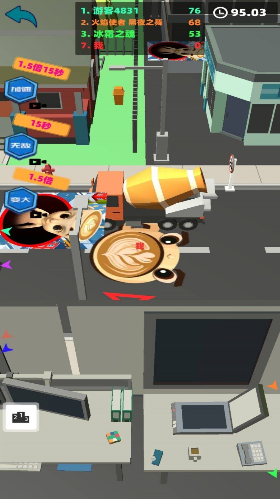 3、在比赛之前,你可以先查看地图和皮肤,然后再去吞噬城市中比你小的物体。