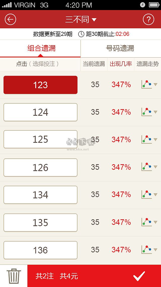 3、用户可以根据自己喜好进行选择号码,发展趋势行情第一时间推送给用户,每位用户都能自由订制彩票计划,赛事数据都会实时推荐。