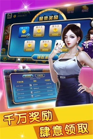 4、新手上线还有更多的奖励可以拿哦,海量的金币特色的游戏房卡和破产救济金。
