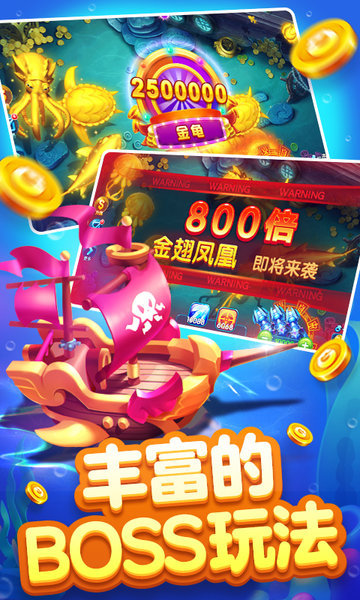 黄金鲨,特色BOSS,百倍银鲨,万倍金鲨。千倍爆率,全程爆机,金币赚翻天。